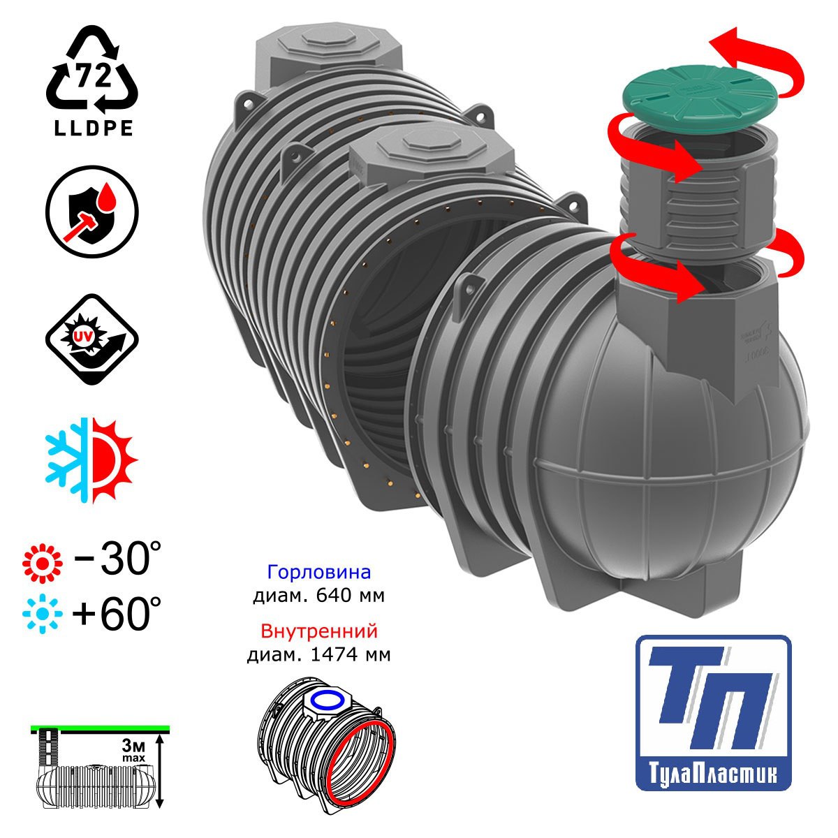 Пластиковые ёмкости объемом 10 000 литров,большой выбор. Гарантия высокого качества, от производителя ТулаПластик в Москве. ... Компания "ТулаПластик" предлагает ёмкости пластиковые на 10000 литров (10 м3) для воды, дизтоплива , химических веществ ,а также для удорений КАС с доставкой по Москве а… Читать дальше также достовляем по всей России.. Всегда в наличии вертикальные и горизонтальные , прямоугольные и конические емкости , в металлической обрешётке, подземные резервуары, кассеты для транспортировки КАС до 12 м3 - большой выбор по выгодным ценам.. ✅Самый большой выбор пластиковых емкостей разных объемов от 100 до 15000 литров и конфигураций ,а также назначения