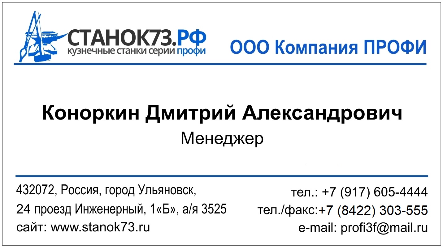 - ВИЗИТКА МЕНЕДЖЕРА -Коноркин Д.А.