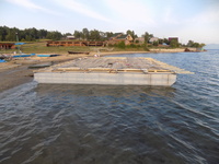 Плашкоут с крановой установкой для подъема и транспортировки топляка (топленого, затонувшего леса). Монтируемая крановая установка 2-7 тонн, вынос стрелы до 17 метров. Выбор крановой установки и