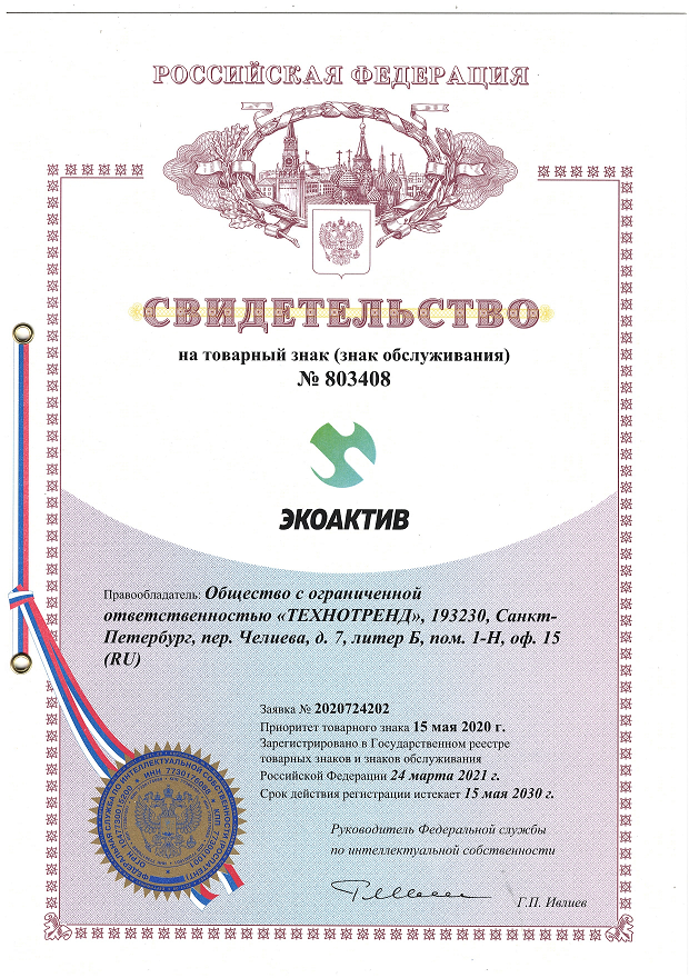 ООО «ТЕХНОТРЕНД» является российским производителем экологически безопасного промышленного очистителя «ЭКОАКТИВ» (ТУ 2381-001-27472201-2015), который обеспечивает высокую степень очистки деталей и узлов. «ЭКОАКТИВ» - это современный универсальный очиститель многократного использования. … Читать дальше Он готов к применению, не разводится водой. Предназначен для очистки деталей и узлов от масел, смазок, консервационных составов, жиров, битумных загрязнений, коррозионных пятен с различных поверхностей и является прямым заменителем пожароопасных и токсичных растворителей типа: керосин, дизельное топливо, уайт-спирит и нефрас. Очиститель используется как для ручной мойки, так и в моющих машинах со струйным обливом, в ультразвуковых установках. Очистка электротехнического оборудования: «ЭКОАКТИВ» является диэлектриком и может применяться для очистки электротехнического оборудования (не воздействует на изоляцию), напряжение пробоя 77 000 Вт. Эффективность очистителя «ЭКОАКТИВ» подтверждается отзывами промышленных предприятий, успешно использующих «ЭКОАКТИВ» в своей работе и признано руководителями предприятий необходимым средством для очистки любого вида загрязнений. Состав: Смесь высокоактивных ПАВ на основе углеводородов парафинового ряда и специальных добавок
